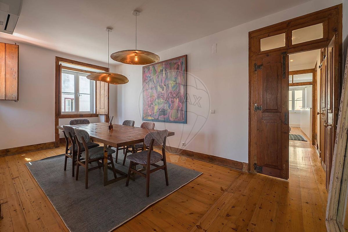 Bathed in southern light and framed by captivating city and river views, this elegant apartment blends Lisbon’s historic charm with contemporary refinement. Set within a classic building with original architectural character, the property has been fully renovated and comes impeccably furnished with exclusive Italian design furniture by Gerbasoni , offering a truly turnkey, luxury experience. Located in one of Lisbon’s most authentic and prosperous neighborhoods, the apartment sits in the heart of the city — steps from excellent restaurants, close to the riverfront, and within easy reach of iconic districts such as PrĂncipe Real and Santos . With 160 sqm of beautifully proportioned interiors, the layout is both elegant and highly functional. The home features a generous living room, a separate dining room, a fully equipped kitchen, three bedrooms (including a versatile smaller room ideal as a guest suite or home office), and two bathrooms . Facing south , the apartment enjoys abundant natural light throughout the day, enhanced by many windows that create a warm, inviting, and sophisticated atmosphere. Partial views over the Tagus River , Cristo Rei , and the 25 de Abril Bridge provide an unmistakable Lisbon backdrop. Additional highlights include air conditioning and luxury finishes throughout — an exceptional opportunity for those seeking comfort, elegance, and a prime central address. A rare offering where light, location, and timeless design come together effortlessly.