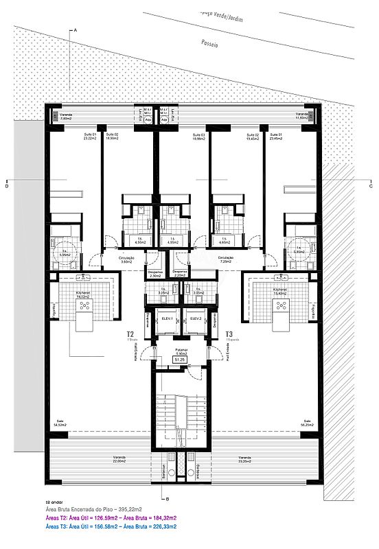 With only 12 apartments, this boutique development ensures exclusivity and peace for all residents. Split between 6 two-bedroom units (T2) and 6 three-bedroom units (T3), each apartment stands out for its generous areas, high-quality finishes, and contemporary architecture that makes the most of natural light and open spaces.