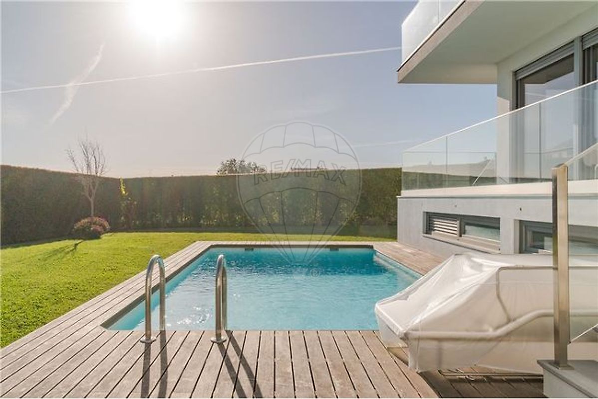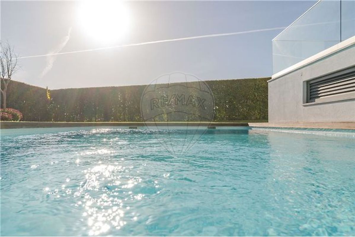 T4+1 house in gated community with private pool Located just off the A5 and A16, surrounded by the best access, 10 minutes from the center of Cascais. The villa is located in a small gated community, very familiar, with 9 semi-detached houses, this being the only corner one with the largest outdoor area and the largest swimming pool. It is divided into 3 floors: Basement with 88m2 box, laundry room, bathroom supporting the pool and access to the pool and the garden. Access to the house is also via the interior of the box, in addition to access on the ground floor.