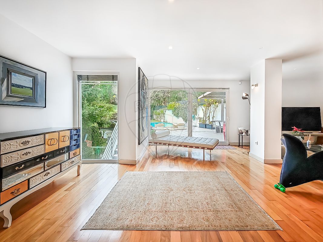 6 bedroom villa in Paço de Arcos | Oeiras. With a swimming pool and garden, it also has a garage for more than 5 cars. Located in one of the best and quietest areas of Paço de Arcos, this villa is the true concept of home, with a great outdoor living area and excellent sun exposure. Inserted in an area served by all kinds of commerce, services and leisure, namely public and private schools, the train station, the sea wall, Paço de Arcos beach, Parque dos Poetas, Oeiras Parque, Avenida Marginal and the A5. Composed by: Floor 0 Entrance hall, living room with direct access to the garden and pool, kitchen with dining room, toilet and utility room. 1st floor A master suite with dressing room and pool view, two bedrooms and a shared bathroom. 2nd floor A suite, two bedrooms, one with a balcony and the possibility of creating an extra suite. Floor -1 Office, games room, direct access to the outside, laundry, storage and garage. = Some images are for illustrative purposes only = The information provided does not dispense with confirmation and cannot be considered binding. For more information and/or to book a viewing, please contact me!