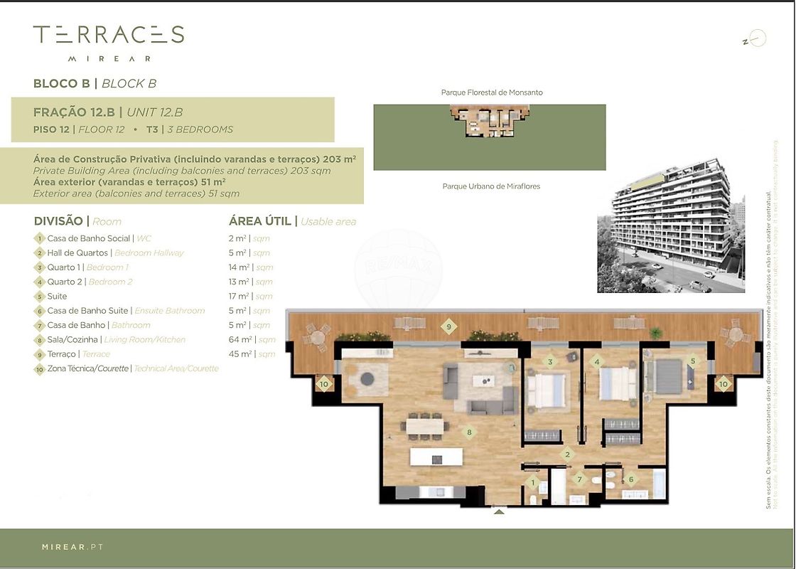 Construção Nova em Miraflores - T3 com 200 m2 Apartamento T3, localizado no Terraces Mirear em Miraflores. Com uma área total de 203 m2 , este imóvel é um exemplo perfeito de arquitetura contemporânea e elegância. Uma das características mais marcantes deste apartamento traduz-se nas suas amplas janelas e varandas que oferecem uma vista desafogada sobre o Parque Urbano de Miraflores e a área verde de Monsanto. A luz natural flui abundantemente em todos as divisões, criando um ambiente luminoso e arejado. Os acabamentos neste apartamento são de qualidade superior, garantindo durabilidade e uma sensação de luxo. Cada detalhe foi cuidadosamente planeado para criar um ambiente de elegância e sofisticação . Este apartamento T3 inclui três lugares de estacionamento e uma arrecadação. O Terraces Mirear oferece um conjunto completo de comodidades, incluindo uma piscina exterior para momentos de lazer e relaxamento, um ginásio, sauna e um jacuzzi para relaxamento. Este apartamento é uma oportunidade única para quem procura um lar com estilo, uma vista desafogada e comodidades de primeira classe. Com uma arquitetura contemporânea , espaços amplos e luminosos , estacionamento e as instalações do condomínio, este imóvel oferece um ambiente sofisticado e uma qualidade de vida excepcional em Miraflores. A informação disponibilizada não dispensa a sua confirmação e não pode ser considerada vinculativa. Contacte-me. New construction in Miraflores Impressive 3 bedroom apartment, located in the Terraces Mirear development in Miraflores. With a total area of 203 m2, this property is a perfect example of contemporary and elegant architecture. One of the most striking features of this apartment is its large windows and balconies that offer a stunning and open view over the Rio Tejo, the Miraflores Urban Park and the green area of Monsanto. Natural light flows abundantly throughout the rooms, creating a bright and airy environment. The finishes in this apartment are of superior quality, ensuring durability and a feeling of luxury. Every detail was carefully planned to create an environment of elegance and sophistication. This T3 apartment includes a very valuable benefit: three parking spaces, providing convenience and security for residents. Furthermore, it also has a storage room. The Terraces Mirear development offers a complete set of amenities, including an outdoor swimming pool for moments of leisure and relaxation, a well-equipped gym to keep in shape, a sauna and a jacuzzi for relaxation. The condominium was designed to meet the needs of a modern and comfortable lifestyle. In short, this 3 bedroom apartment in the Terraces Mirear development is a unique opportunity for those looking for a home with style, an open view and first-class amenities. With contemporary architecture, large and bright spaces, parking and condominium facilities, this property offers a sophisticated environment and an exceptional quality of life in Miraflores. The information provided cannot be considered binding. Contact me. Nouvelle construction à Miraflores Impressionnant appartement de 3 chambres, situé dans le développement Terraces Mirear à Miraflores. D'une superficie totale de 203 m2 , cette propriété est un parfait exemple d'architecture contemporaine et élégante. L'une des caractéristiques les plus frappantes de cet appartement est ses grandes fenêtres et ses balcons qui offrent une vue imprenable et dégagée sur le Rio Tejo, le parc urbain de Miraflores et l'espace vert de Monsanto. La lumière naturelle circule abondamment dans les pièces, créant un environnement lumineux et aéré. Les finitions de cet appartement sont de qualité supérieure, garantissant durabilité et sensation de luxe. Chaque détail a été soigneusement planifié pour créer un environnement d'élégance et de sophistication. Cet appartement T3 comprend une prestation très précieuse : trois places de parking, apportant commodité et sécurité aux résidents. De plus, il dispose également d'un débarras. Le développement Terraces Mirear offre un ensemble complet d'équipements, dont une piscine extérieure pour des moments de loisirs et de détente, une salle de sport bien équipée pour rester en forme, un sauna et un jacuzzi pour la détente. La copropriété a été conçue pour répondre aux besoins d'un style de vie moderne et confortable. En bref, cet appartement de 3 chambres dans le développement Terraces Mirear est une opportunité unique pour ceux qui recherchent une maison avec du style, une vue dégagée et des commodités de première classe. Avec une architecture contemporaine, de grands espaces lumineux, des parkings et des installations de copropriété, cette propriété offre un environnement sophistiqué et une qualité de vie exceptionnelle à Miraflores. Les informations fournies ne peuvent être considérées comme contraignantes. Contactez moi.