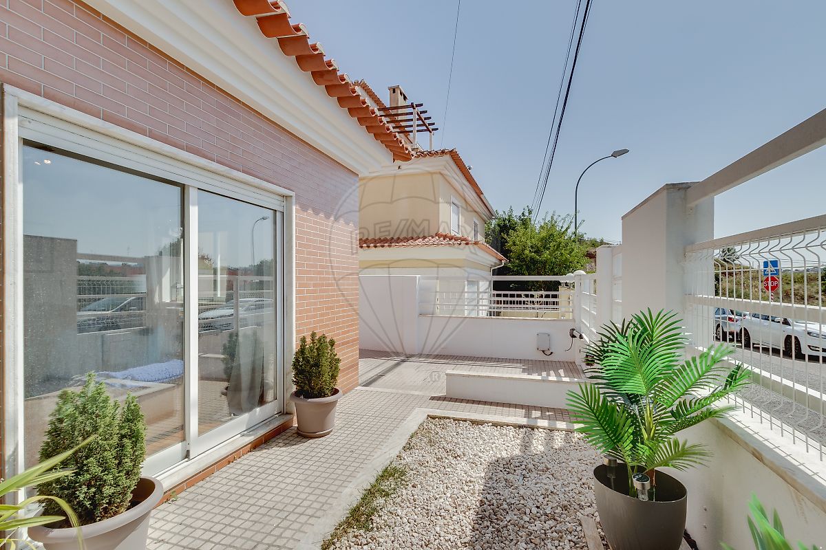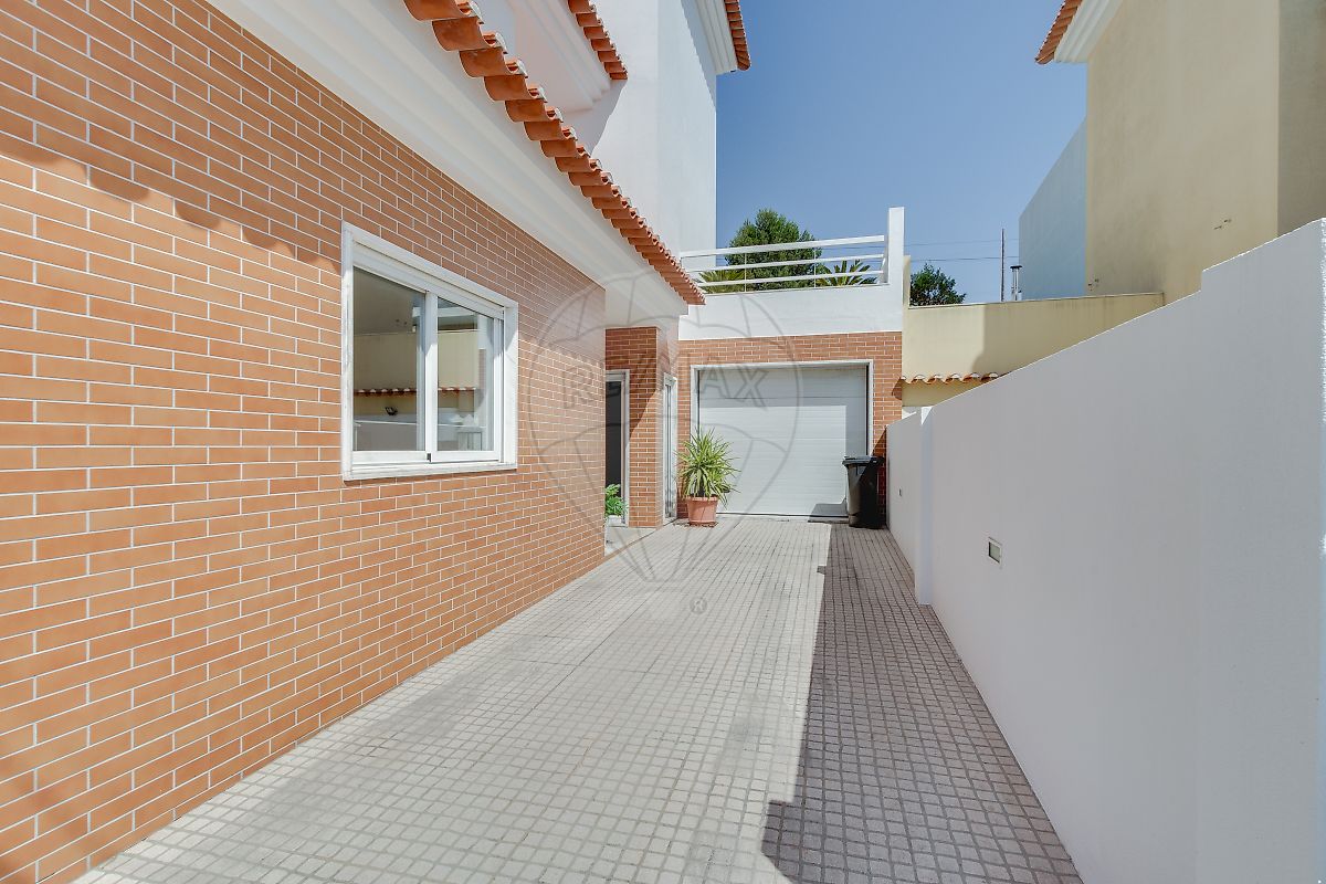 3-storey house, located in Murganhal, in Caxias, next to the National Team Training Centre, with a rear area for a garage and a large patio.