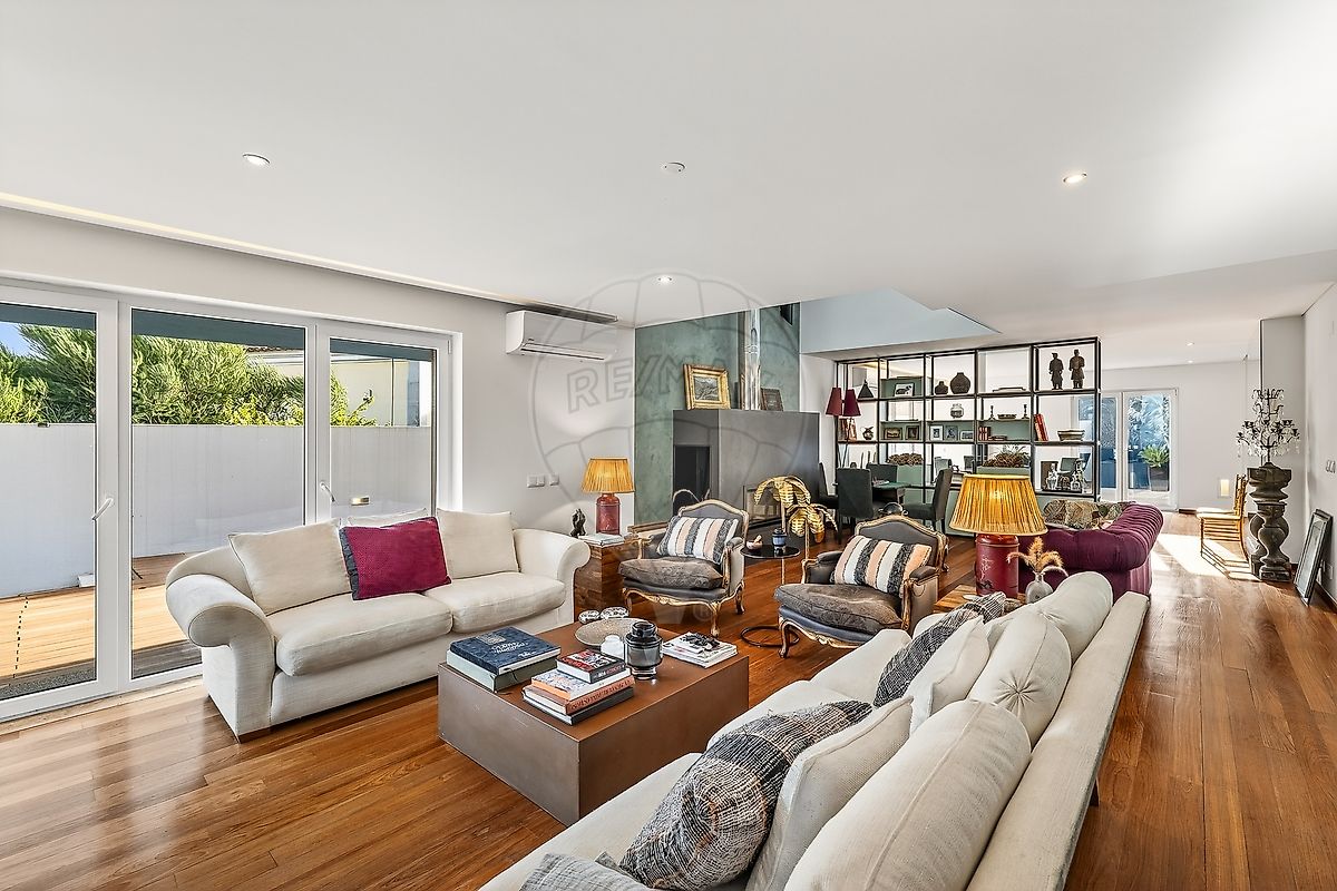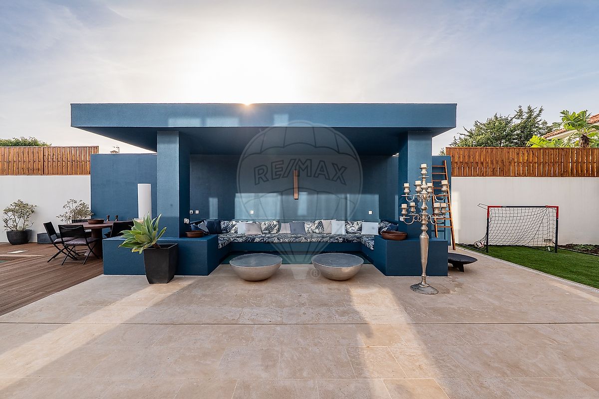 Moradia de arquitectura moderna, como nova, muito perto da praia do Guincho! Piso em madeira maciça Jatobá, cozinha Koklatt, piscina Hidrion " sem cloro " aquecida, e com área projectada de lazer, grandes placas de aço corten enferrujado, sala de cinema, entre outros aspectos diferenciadores... Ao entrar somos recebidos por um hall de generosa dimensão que faz a distribuição dos espaços, daqui segue-se para todas as áreas da casa, uma bonita escada em estrutura de vigas de ferro industrial, com os degraus na mesma madeira maciça Jatobá de todo o piso da casa, e uma claraboia de grande dimesão por onde entre bastante luz natural.À esquerda uma primeira suite / escritório, esta divisão está próxima à entrada do lote da casa, e é possivel entrar e sair deste espaço, sem passar pela entrada principal da casa, para que possa receber alguém no seu escritório, sem entrar na privacidade de sua casa. À direita uma ampla cozinha Koklat de última geração, no formato de um quadrado perfeito, com uma ilha ao centro, uma placa de indução com extrator integrado, e ao redor todos os electrodomésticos embutidos. Acesso directo para a sala de jantar, e para o lounge exterior e a piscina. A sala de jantar fica devidamente situada entre a cozinha e a sala de estar, conta com um grande armário aparador, da dimensão de uma parede, com entre outros apectos, umas grandes caixas de alumínio para manter as bebidas no gelo. A sala de estar conta com dois ambientes distintos, uma área de lazer com lareira e um pé direito duplo que é um vão em aberto até ao piso superior dos quartos, permitindo assim que o ar quente da lareira possa subir e aquecer também o piso das suítes. O segundo ambiente é área de assistir TV, com grandes sofás e cadeirões, daqui é também possível aceder ao espaço exterior da casa. No primeiro piso, encontramos três suites, sendo que a master encontra -se do lado oposto das outras duas, conferindo assim uma maior privacidade, a master conta também com um walking closet, entre a área de quarto e a casa de banho. Esta suite tem um terraço privativo. As outras duas suítes, uma possui banheira, ambas dividem entre si um terraço. Todas as casas de banho das suítes, têm um revestimento de micro cimento, piso radiante e toalheiros aquecidos. No piso inferior, que é praticamente ao nível da cota soleira, não sendo assim uma cave, econtramos uma sala de cinema, uma sala de festas com bar, jogos e muito espaço, com duas janelas para o interior da piscina, uma ampla wine cellar, duas arrecadações, garagem para 3 a 4 viaturas, sendo que no exterior é possível estacionar mais 3 a 4 viaturas. E uma suíte de serviço, com entrada independente, permitindo assim que a/o (s) funcionários possam entrar e sair, sem passar pela casa. Toda a casa está equipada com ar condicionado quente e frio. Praia do Guincho, 2 minutos de carro. Colégios Nacionais e Internacionais, diversos em até 5 minutos de carro. Hospital Privado mais perto, 2 minutos de carro. Hospital Público de Cascais, em 5 minutos de carro. Rápido acesso a Auto estrada A5, que liga Cascais a Lisboa. Aeroporto de Lisboa em 25 / 30 minutos. A informação disponibilizada não dispensa a sua confirmação e não pode ser considerada vinculativa.