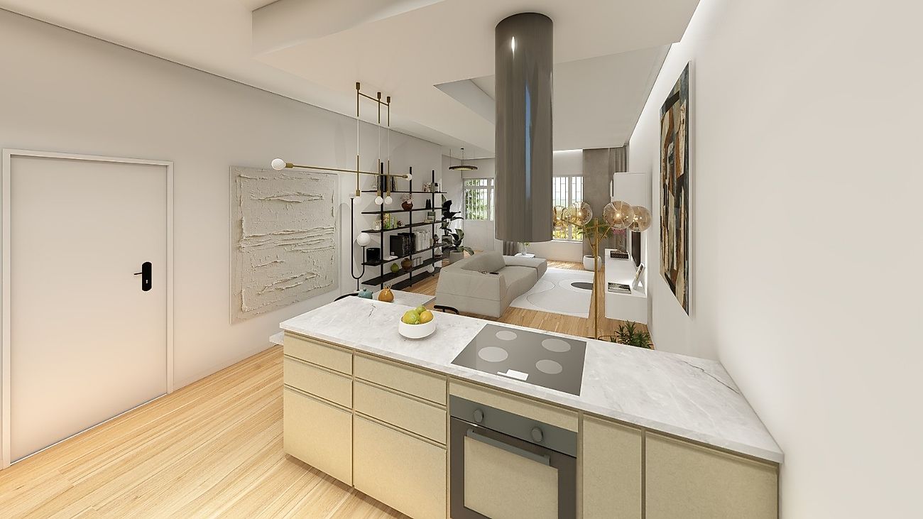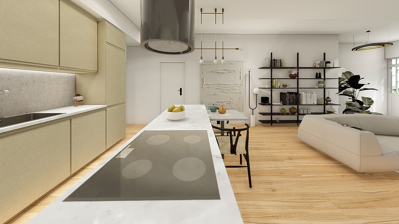Uma kitchenette integrada em zona social;