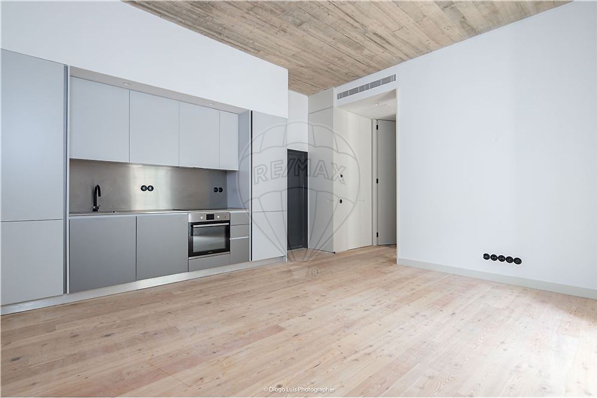 Apartamento a estrear com carácter de Loft, com duas assoalhadas, composto por uma sala com cozinha americana moderna (27,38m2), equipamentos e acabamentos topo de gama, um quarto (9,87m2) e um WC completo (3,36m2).