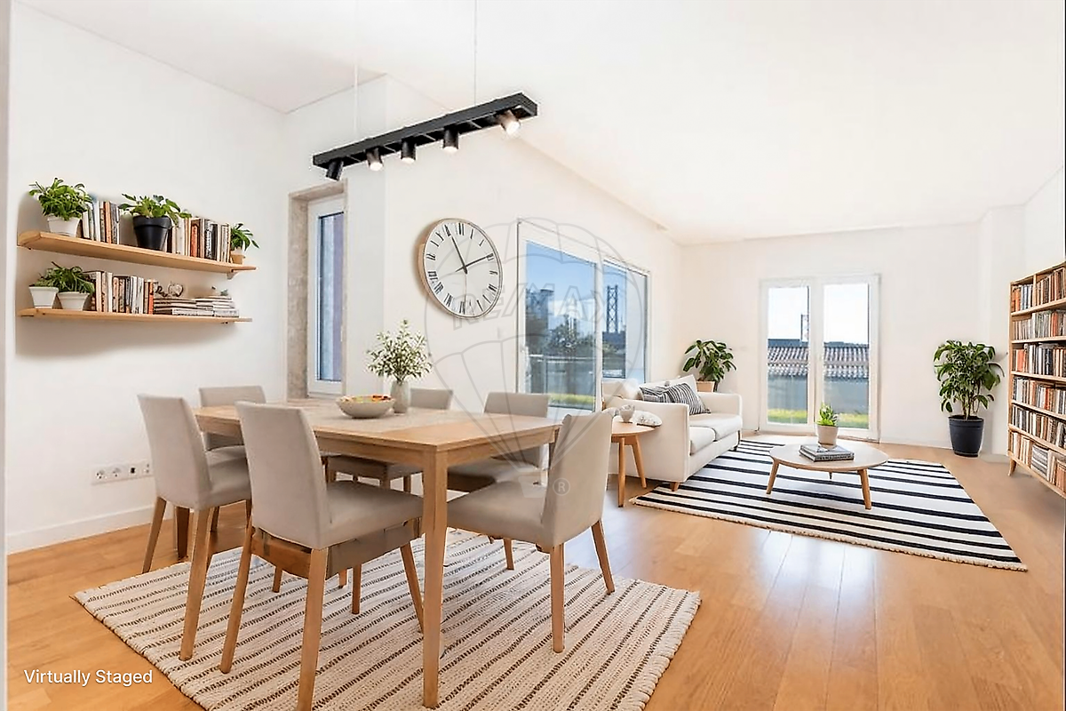 Apartamento T2 com amplo terraço e piscina | Condomínio Fechado | Edifício Belrio – Alcântara, Lisboa Apresentamos este apartamento T2 de elevada qualidade , inserido no prestigiado Edifício Belrio , localizado na Rua do Giestal , em Alcântara — uma das zonas de Lisboa em maior valorização e com excelente qualidade de vida. O imóvel destaca-se pela sua arquitetura contemporânea , excelente luminosidade natural e pela rara combinação de amplos espaços exteriores privativos com piscina em condomínio , um verdadeiro diferencial na cidade. A zona social é composta por uma sala ampla e elegante , com pavimento em soalho de madeira natural , iluminação embutida e grandes vãos envidraçados que permitem uma ligação fluida ao exterior. A sala dá acesso direto a um magnífico terraço de grandes dimensões , ideal para criar diferentes ambientes — zona de refeições, lazer ou descanso — com ótima exposição solar e privacidade. A cozinha é moderna, funcional e totalmente equipada , com mobiliário lacado, bancada em pedra natural, eletrodomésticos encastrados e excelente capacidade de arrumação. Dispõe ainda de ventilação natural e zona de lavandaria independente , prática e discretamente integrada. A área privada é composta por dois quartos confortáveis , ambos com pavimento em madeira e boa luminosidade natural. O quarto principal conta com roupeiros embutidos e acesso direto a uma varanda , com vista desafogada. O segundo quarto é versátil, podendo ser utilizado como quarto, escritório ou quarto de hóspedes. O apartamento dispõe de duas casas de banho , ambas com design contemporâneo e acabamentos de qualidade. O imóvel encontra-se em excelente estado de conservação , equipado com climatização, caixilharia moderna, portas lacadas, armários embutidos e uma distribuição equilibrada entre áreas sociais e privadas. O Edifício Belrio oferece áreas comuns cuidadas , elevador, acessos amplos e uma agradável piscina exterior , rodeada por zonas verdes e resguardada, proporcionando conforto e tranquilidade aos residentes. Localizado em Alcântara , beneficia da proximidade a comércio, serviços, transportes públicos, zonas verdes, frente ribeirinha e rápidos acessos às principais vias da cidade, bem como a Belém e ao centro de Lisboa. 👉 Uma excelente oportunidade para habitação própria ou investimento, num apartamento que alia conforto, espaço exterior, qualidade de construção e localização privilegiada.