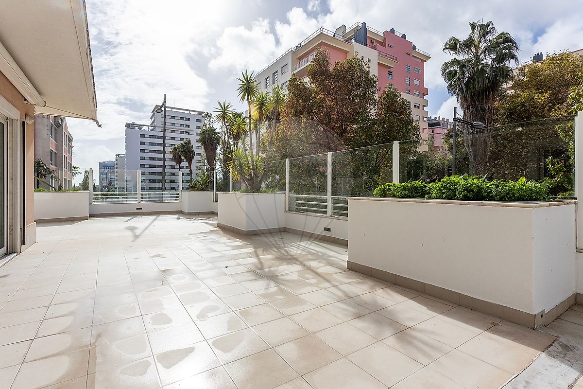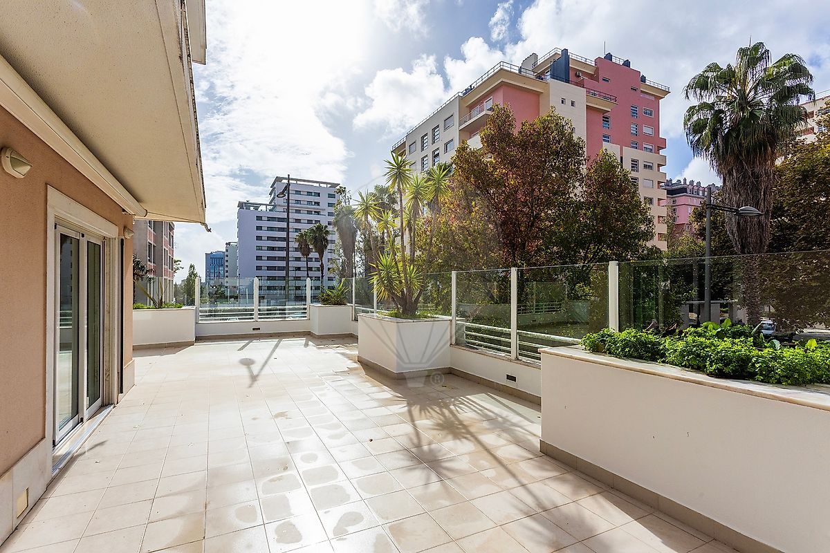 Apresentamos-lhe este fantástico apartamento T5, com uma área bruta de 313,45 m², situado no prestigiado Parque dos Príncipes, uma das zonas residenciais mais nobres e procuradas de Lisboa. Este imóvel de exceção destaca-se pelos seus espaços amplos, acabamentos de alta qualidade e uma exposição solar totalmente virada a sul, garantindo uma luminosidade natural única em todas as divisões. Com um magnífico terraço de cerca de 70 m², todas as divisões do apartamento têm acesso direto ao exterior, proporcionando uma perfeita harmonia entre o interior e o ambiente ao ar livre. A zona esquerda da habitação corresponde a um T2, com dois quartos, um deles em suíte, enquanto a zona direita apresenta um T3, ideal para áreas sociais e privadas bem definidas. O apartamento oferece um conjunto de características que elevam o conforto e a sofisticação: estores e toldos elétricos, ar condicionado em todas as divisões, sistema central de conduta Panasonic, aquecimento central, aspiração central, blackouts em todas as janelas e iluminação com sensores de presença. O chão em madeira de carvalho francês confere elegância e aconchego a todo o espaço, enquanto a cozinha, equipada com eletrodomésticos novos, dispõe de uma ilha central e acesso direto ao terraço, criando um ambiente funcional e moderno. O imóvel conta ainda com duas boxes com capacidade para três viaturas, duas arrecadações amplas e um cofre embutido, acrescentando segurança e conveniência. Este apartamento distingue-se pela combinação perfeita entre design contemporâneo, conforto e tecnologia, num dos bairros mais valorizados de Lisboa. Rodeado de zonas verdes, próximo de escolas internacionais, ginásios, comércio local e com excelentes acessos às principais vias, representa uma oportunidade única para quem procura qualidade de vida, privacidade e elegância num só espaço. Para mais informações ou para agendar uma visita a este imóvel exclusivo, entre em contacto connosco! --- We present this fantastic 5-bedroom apartment with a total area of 313.45 sqm, located in the prestigious Parque dos Príncipes — one of Lisbon’s most desirable and exclusive residential areas. This exceptional property stands out for its spacious interiors, high-quality finishes, and full southern exposure, ensuring abundant natural light throughout the day. Featuring an impressive terrace of approximately 70 sqm, every room in the apartment offers direct access to the outdoor area, creating a perfect harmony between indoor comfort and open-air living. The left wing of the property comprises a two-bedroom section, including one en suite, while the right wing offers a three-bedroom layout, ideally separating social and private areas. The apartment is equipped with a wide range of premium features designed for maximum comfort and sophistication: electric shutters and awnings, air conditioning in every room, a Panasonic central duct system, central heating, central vacuum system, blackout blinds on all windows, and motion sensor lighting. The French oak wooden flooring adds warmth and elegance to the entire space, while the fully equipped kitchen, fitted with new appliances, includes a central island and direct access to the terrace, providing both functionality and modern design. The property also includes two garage boxes with capacity for three cars, two spacious storage rooms, and a built-in safe, ensuring both practicality and security. This apartment perfectly combines contemporary design, comfort, and technology in one of Lisbon’s most sought-after locations. Surrounded by green spaces, close to international schools, gyms, local shops, and with excellent access to major roads, it represents a unique opportunity for those seeking an exclusive lifestyle, privacy, and refinement in the heart of the city. For more information or to schedule a visit to this exclusive property, contact us!