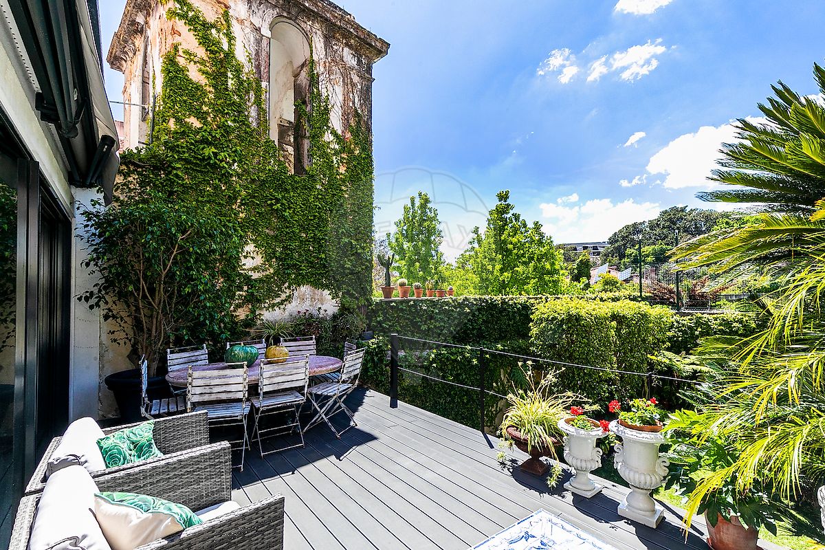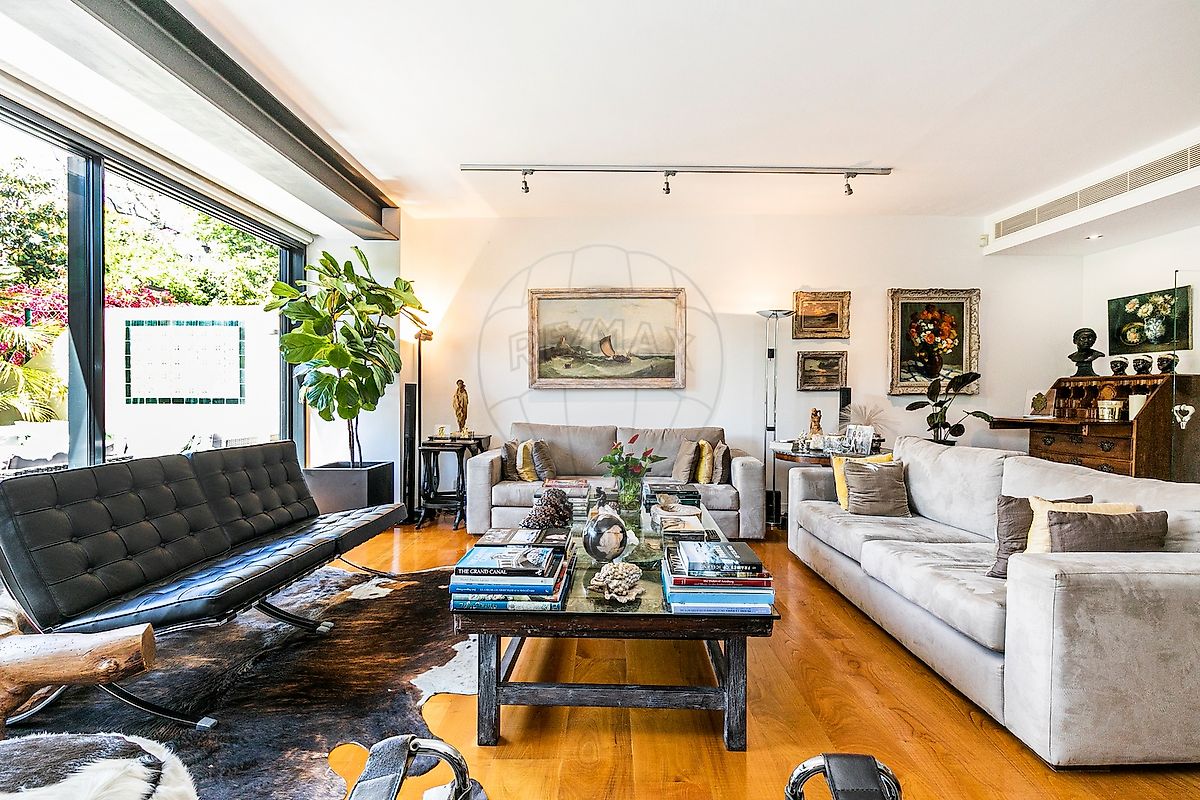 Townhouse T5 na Lapa — Uma peça verdadeiramente singular No coração da Lapa, uma das zonas residenciais mais exclusivas de Lisboa, encontra-se esta extraordinária moradia de três pisos. A fachada histórica revestida a azulejo preserva o charme original, enquanto o interior foi totalmente reconstruído com materiais de excelência e equipamentos topo de gama. A entrada faz-se pelo rés do chão, onde um hall revestido com painéis de azulejo e acabamentos em pedra estabelece o tom da casa. A partir deste espaço, que também dá acesso ao piso superior, chegamos a um segundo hall mais reservado. Nesta área encontram-se dois quartos amplos, ambos com roupeiros embutidos, sendo que um deles dispõe de acesso direto ao jardim. São servidos por uma casa de banho em lioz. O hall integra ainda vários armários adicionais, garantindo ampla arrumação. Aqui localiza-se também a zona de lavandaria/arrumos, com WC de serviço e acesso ao jardim, permitindo concentrar todas as áreas técnicas da casa. A partir deste piso acede-se ainda à cave — ideal para arrumos, maquinaria ou mesmo para criar uma adega. A moradia está equipada com elevador. 1.º Piso — A zona social O primeiro piso é dedicado à vivência social. A cozinha, totalmente em mármore e equipada com porta automática em vidro, apresenta uma península generosa que acolhe toda a família. O bloco central integra o fogão e o forno de grandes dimensões da Gaggenau. Os restantes equipamentos — forno, micro-ondas e máquina de lavar loiça — são Miele, enquanto o frigorífico e a arca, em formato side-by-side, são da Liebherr. Este piso inclui ainda um WC de serviço e a sala principal. Com mais de 50 m² e ligação direta ao jardim, a sala oferece um enquadramento visual raro. A amplitude permite criar duas zonas distintas: sala de jantar e área de estar, ambas iluminadas por grandes vãos envidraçados. Daqui acede-se a um amplo deck com zona de refeições e área de lounge, funcionando como uma extensão natural da sala. O jardim, orientado a sudoeste, beneficia da confluência dos jardins vizinhos, criando a sensação de um verdadeiro oásis — um espaço verde surpreendente para quem passa na rua. O deck, protegido do vento e equipado com toldo elétrico, permite usufruir do exterior durante todo o ano. O jardim, com cerca de 100 m², dispõe de rega automática. 2.º Piso — A área privada No último piso encontram-se dois quartos, um deles atualmente utilizado como sala de leitura/escritório, servidos por uma casa de banho em mármore pele de tigre. É também neste piso que se situa a master suite, com vista para o jardim. Dispõe de zona de closet e de uma ampla casa de banho, igualmente revestida em mármore pele de tigre. O sótão, acessível a partir do interior, oferece espaço adicional de arrumação. Equipamentos e comodidades - Piso radiante em todas as casas de banho - Ar condicionado em todas as divisões - Estores e blackouts elétricos - Painéis solares para aquecimento de águas, complementados por bomba de calor - Porta de segurança - Caixilharias de alta performance, com corte térmico e controlo de luz - Dois lugares de estacionamento Venha descobrir esta magnífica villa na Lapa — um imóvel verdadeiramente único no mercado lisboeta.