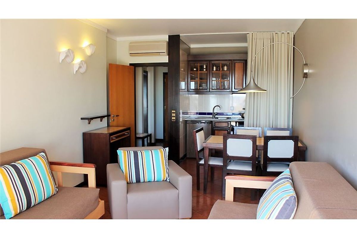 One bedroom apartment inserted in 4 stars hotel complex located in privileged area of ​​Albufeira, 5 minutes from the beach, close to all services, such as: Municipal Camera, Banks, Finance, Post Office, Supermarkets, Restaurants, Shops, ... It has a reception, games room, bar, pool bar, restaurants, pool snack bar, meeting room, outdoor swimming pool, indoor heated pool, Jacuzzi, 2 tennis courts, soccer field, Basketball and Volleyball, Mini golf , Slot Cars Lane, Convenience Store, Hairdresser, Wine Bar, Private Outdoor Parking and courtesy bus. The apartment is composed of good sized bedroom with balcony, a kitchenette equipped with 2 vitroceramic hobs, oven, extractor fan, fridge, crockery, cutlery and other accessories, living room with balcony, double glazing, bathroom with stone countertop, Satellite TV, piped music, telephone, air conditioning, safe and fire detector. ADVANTAGES: 1. Possibility of permanent residence of the owner; 2. Possibility of a guaranteed annual income of 5% of the selling price of the apartment in case of delivery of the same to the tourist operation, can also take advantage of 15 days in low season free of charge, in high season granting a discount equal to the price practiced by tour operators, 15% discount on restaurant consumption. 3. Much higher investment returns or enjoyed with the Credit Institutions (about 0.5% per year)