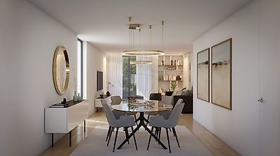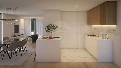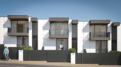 Moradias novas de tipologia T3 de arquitetura com design contemporâneo minimalista que alia a funcionalidade à estética, gerando um equilíbrio dos espaços e potenciando a relação interior com o exterior.