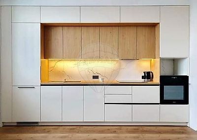 Cozinhas modernas com móveis lacados e bancadas em quartzo compacto, totalmente equipadas com eletrodomésticos Bosch;