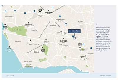 Beneficiando de uma localização central - a um passo da estação de metro de Francos e a 10 minutos a pé da Casa da Música - The Line oferece aos seus residentes a possibilidade de habitar com enorme conforto e estilo usufruindo, simultaneamente, das vantagens de viver na cidade do Porto.