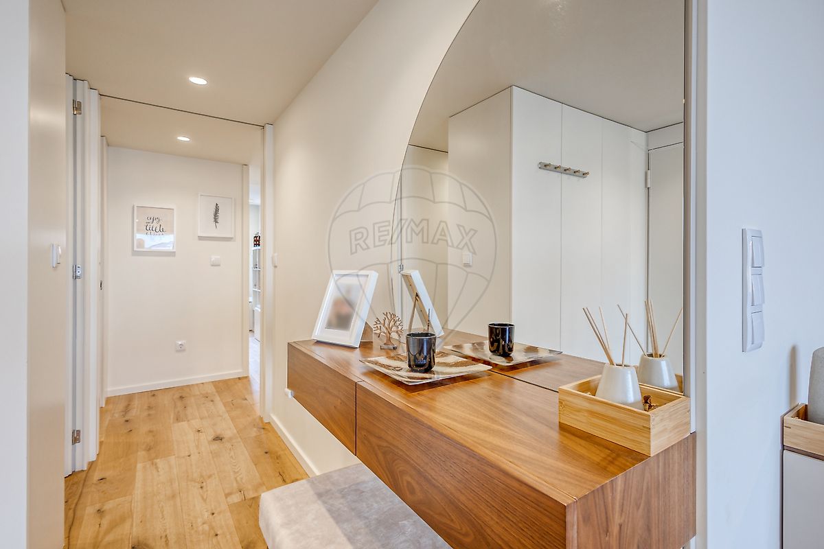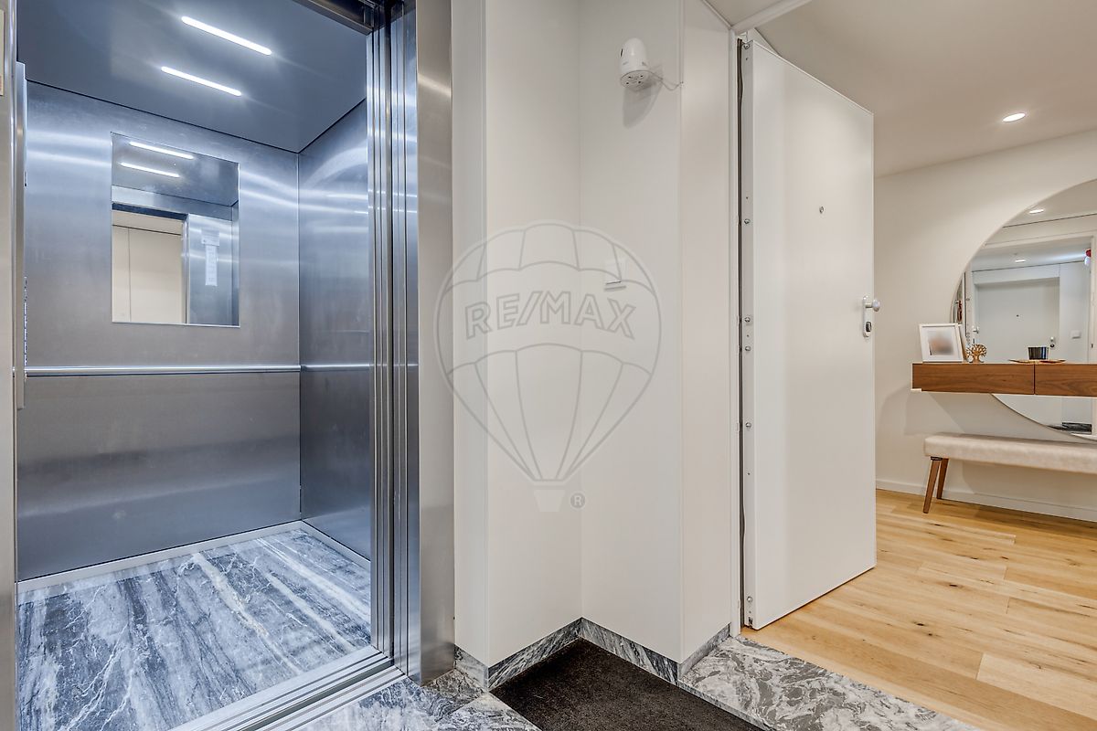 Características Principais: Piso Superior: Localizado no 5º e último andar (prédio com elevador), com duas frentes que garantem excelente luminosidade. Estacionamento e Arrumação: Inclui 2 lugares de garagem na cave, 1 lugar privativo adicional no interior do condomínio e arrumos fechados. Climatização e Eficiência: Equipado com ar condicionado Daikin em todas as divisões, caixilharia com corte térmico, vidros duplos e painéis solares. Distribuição Interior: Zona Social: Conceito open space com sala totalmente mobilada e acesso direto a uma varanda. Cozinha de design moderno, totalmente equipada com eletrodomésticos Bosch (placa, forno, micro-ondas, MLR) e exaustor Fraza. Lavandaria independente equipada com máquinas de lavar e secar.
