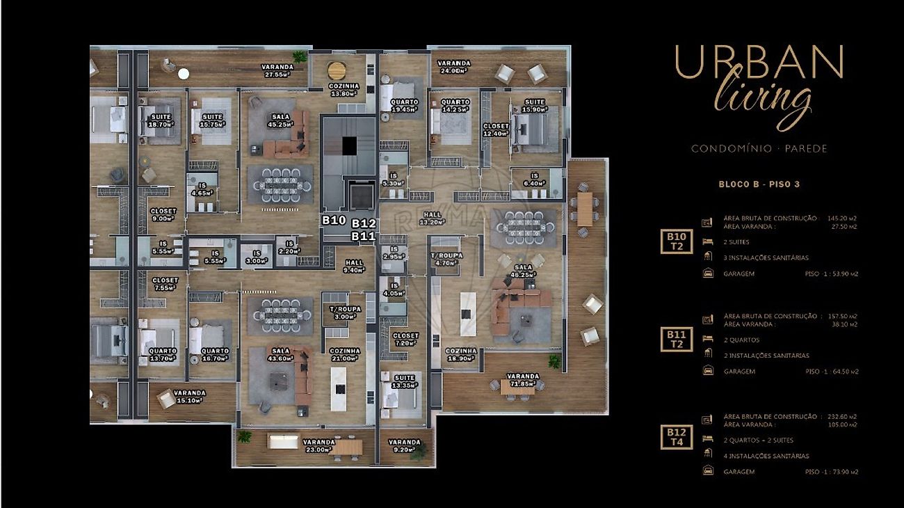 Apartamento T3 para venda O Urban Living é um condomínio fechado localizado na Parede, em Cascais. O empreendimento oferece apartamentos T 2, T3 e T4, estes em Penthouses O condomínio oferece portaria, piscina, ginásio, parque infantil, jardim e áreas de estacionamento, como garagem fechada ou parqueamento. Todos os apartamentos têm áreas exteriores privativas, como varandas ou terraços aumentando assim o conforto para si e para a sua família. É composto por 2 blocos de apartamentos, em que os últimos pisos usufruem de um espaço privado no roof top, com piscina e zona de lazer privativas em que poderá usufrui de espaço ao ar livre de qualidade. As áreas dos apartamentos variam de 145m2 a 240m2, todos com amplos espaços e as frentes viradas a nascente e poente. O projeto foi concebido para combinar a tranquilidade da proximidade do mar com o dinamismo das zonas de Cascais e Lisboa. Oferece conforto, qualidade de vida e a segurança de um condomínio privado. Na Parede encontra uma praia pequena e rochosa em algumas zonas, conhecida pelas suas propriedades terapêuticas (devido à concentração de iodo), sendo tradicionalmente um local procurado para tratamentos de saúde. A muito pouca distância tem mais popular praia da linha de Cascais, a praia de Carcavelos, famosa pelo seu extenso areal e excelentes condições para a prática de surf e outros desportos aquáticos, com várias escolas de surf disponíveis. A praia possui uma boa infraestrutura, incluindo restaurantes e bares com vista para o mar. A zona da Parede dispõe ainda de uma variada oferta de comércio e serviços , satisfazendo as necessidades diárias dos seus residentes e visitantes. A sua localização oferece acesso fácil pedonal á estação de comboios da Parede ligando Cascais a Lisboa (Cais do Sodré) . Pode também por deslocar-se facilmente de carro na Avenida Marginal Cascais- Lisboa ou pela Auto estrada A5.