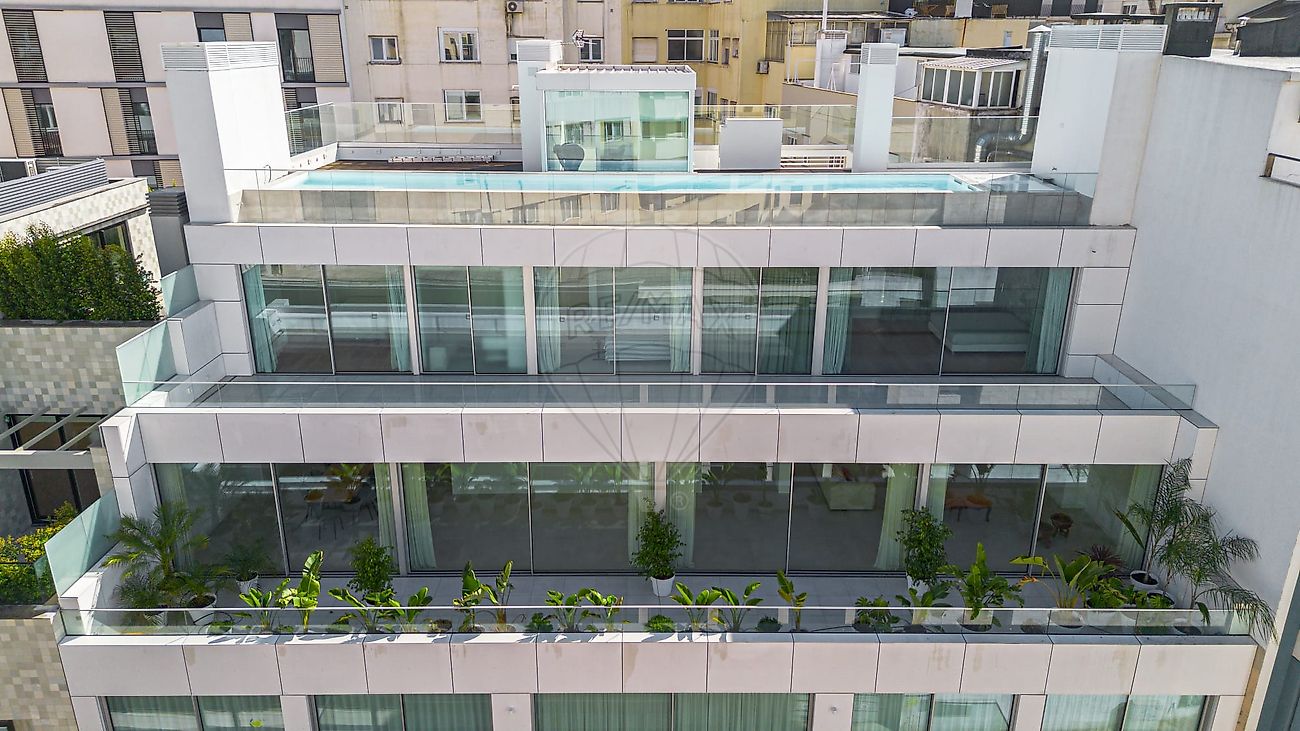Exterior e Lazer: Piscina Privada: Rooftop exclusivo com piscina infinita e vista deslumbrante sobre Lisboa.
