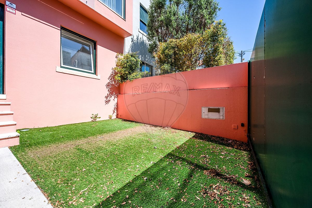 Primeiro andar encontra a suite com closet, dois quartos todos com roupeiro e, uma casa de banho. Conta ainda com jardim de 40 m2 e um lugar privativo de estacionamento para 1 carro com portão automático. Caixilharia oscilo batente com de vidros duplos e estores elétricos em toda a casa.