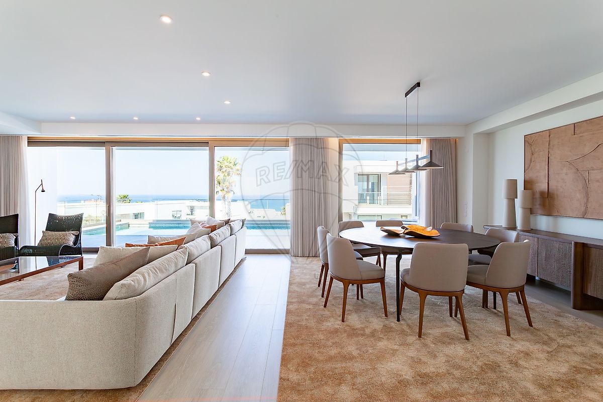 A moradia dispõe de três amplas suites, todas concebidas para garantir total privacidade e bem-estar. A master suite assume um papel de destaque, com vista mar deslumbrante e um generoso walk-in closet, criando um verdadeiro refúgio de tranquilidade. Cada elemento foi meticulosamente pensado para oferecer o máximo em qualidade de vida: cozinha de design personalizada equipada com eletrodomésticos Miele, sistema Quooker que permite água filtrada, fria, quente e com gás diretamente da torneira, e uma elegante cave de vinhos, mobiliário exclusivo feito à medida e acesso facilitado entre pisos através de elevador interno, assegurando conforto e conveniência no dia a dia.