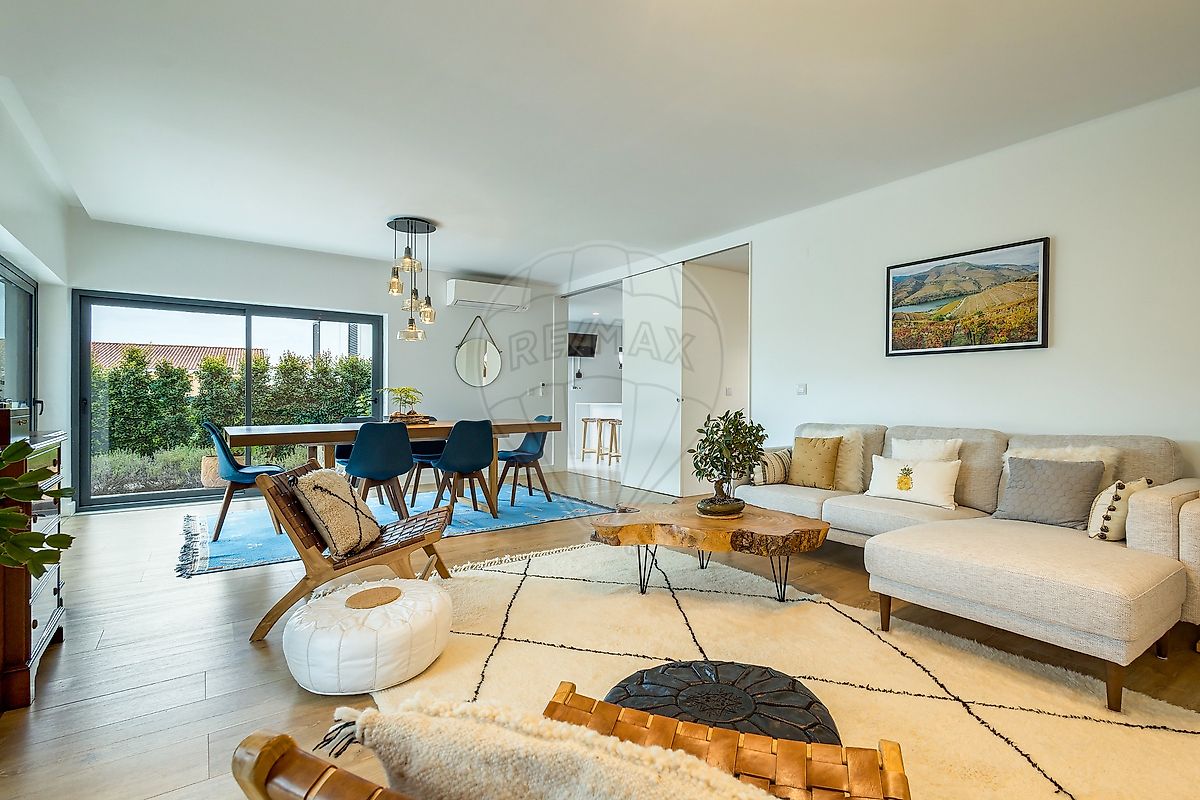 Piso Térreo Hall de entrada WC social Escritório com ampla varanda Sala de estar espaçosa e muito luminosa, com acesso direto ao jardim privativo, criando uma ligação fluída entre interior e exterior Cozinha totalmente equipada com eletrodomésticos BOSCH, que alia funcionalidade, design e qualidade superior 1.º Piso Dois quartos com roupeiros embutidos Uma suite com roupeiro e terraço privativo, ideal para desfrutar de uma magnífica vista sobre a Serra de Sintra Casa de banho completa de apoio aos quartos Cave Zona de lavandaria e arrumos Divisão versátil, ideal para quarto adicional, sala de cinema, ginásio privado ou espaço de lazer Garagem fechada para uma viatura A moradia está equipada com vidros duplos, ar condicionado e bomba de calor para aquecimento de águas e climatização, garantindo conforto e eficiência energética ao longo de todo o ano. Para além da garagem, o condomínio dispõe de lugares de estacionamento adicionais para residentes e visitantes. O condomínio oferece ainda uma agradável área ajardinada e piscina comum, sendo que cada moradia beneficia de um espaço exterior privativo, garantindo privacidade para momentos de descanso e convívio. Localizada entre Sintra e Cascais, esta propriedade usufrui de uma localização privilegiada: A cerca de 20 minutos do centro de Lisboa 25 minutos do Aeroporto Internacional de Lisboa 15 minutos do centro histórico de Sintra 15 minutos das praias da linha de Cascais Uma oportunidade única para viver com qualidade, conforto e exclusividade, em plena harmonia com a natureza.