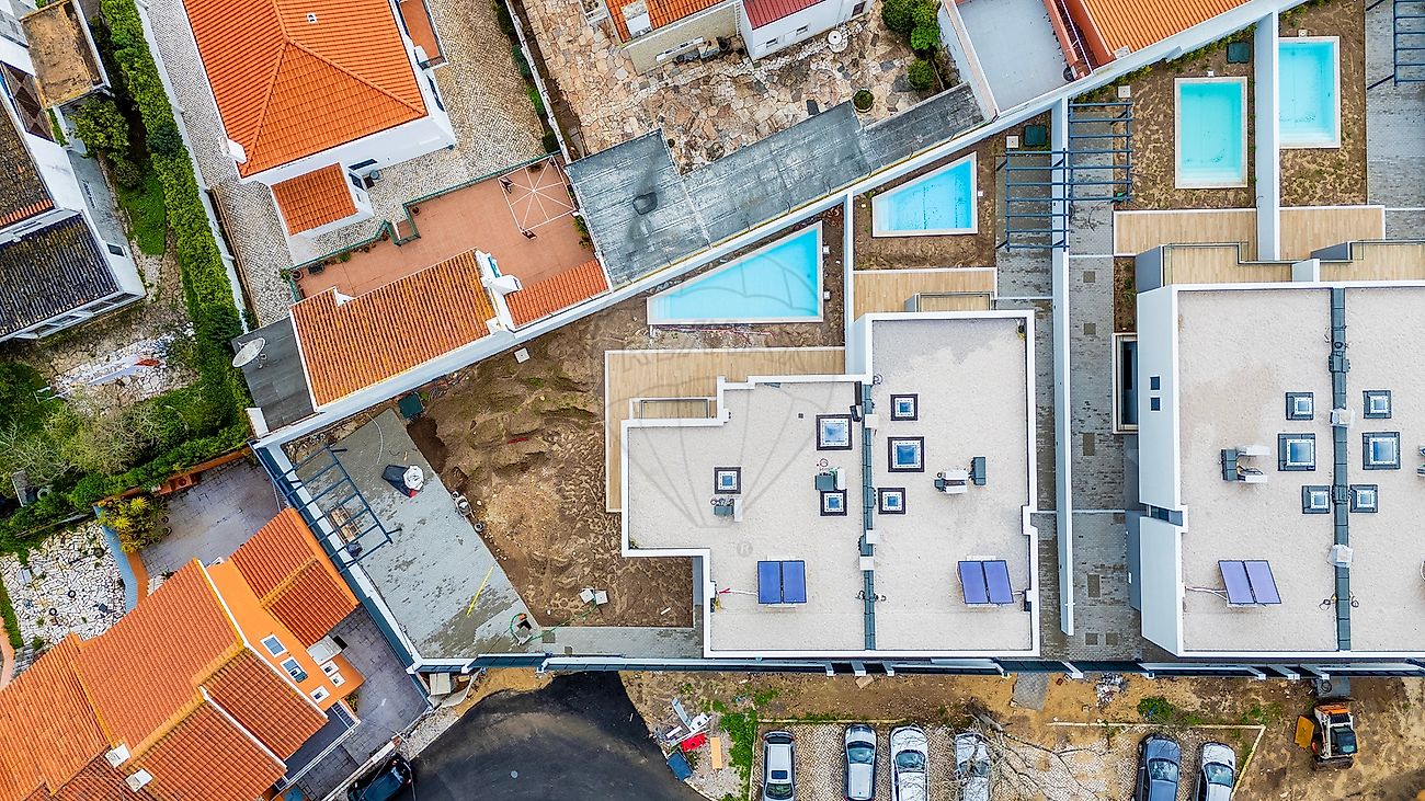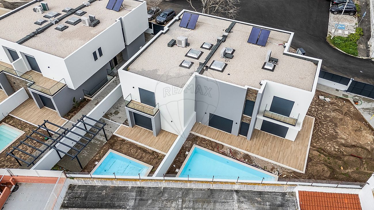 Zona Exterior Moradia nova a estrear , inserida num condomínio privado composto por quatro moradias geminadas (2 a 2) , onde cada unidade dispõe de espaço exterior perfeitamente definido, garantindo conforto, tranquilidade e privacidade. Implantada num lote de terreno ideal para quem valoriza qualidade de vida, a moradia dispõe de zona exterior com piscina , com pré-instalação para ligação á bomba de calor, e uma agradável área de lazer, beneficiando de excelente exposição solar.