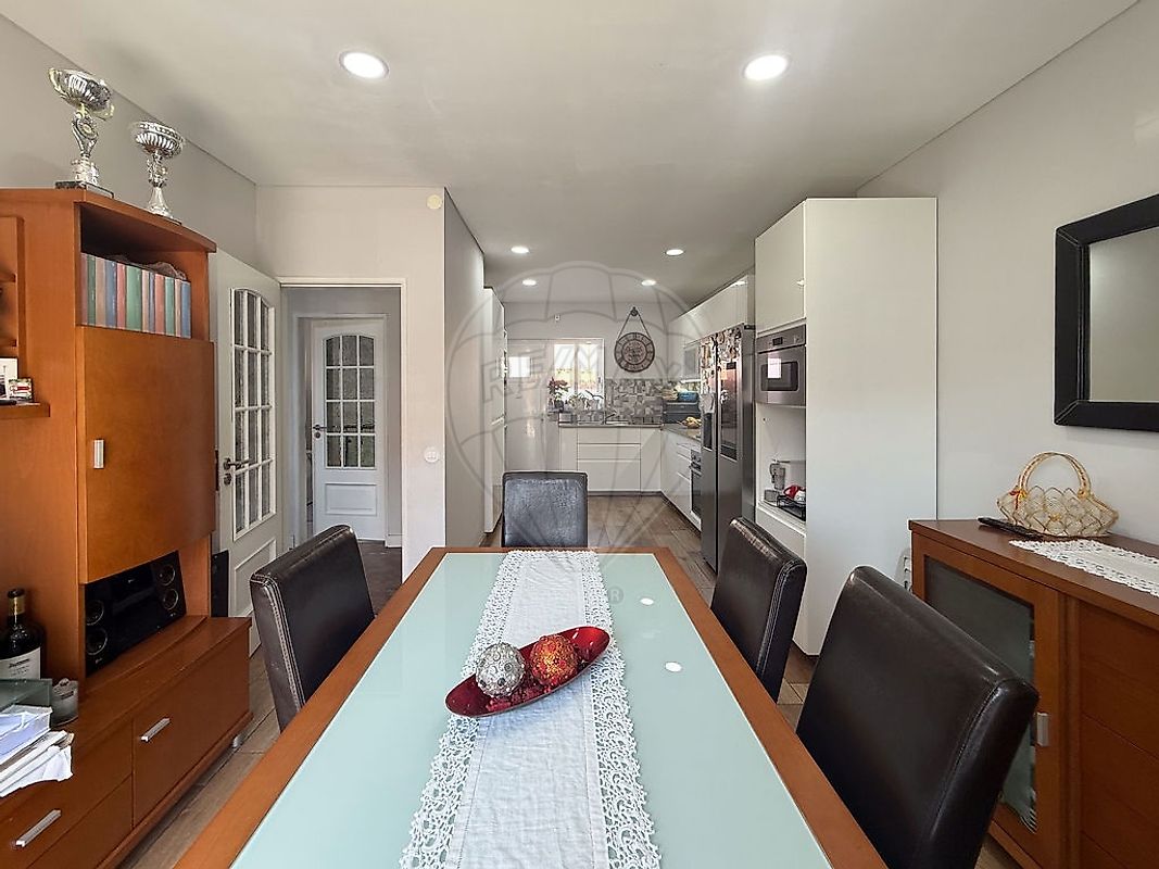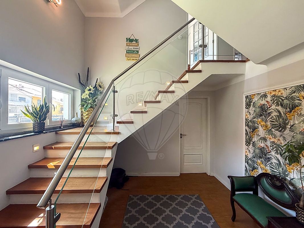 Moradia Geminada T4+1 com Piscina, Jardim e Garagem no Coração de Algueirão Moradia de 3 pisos, situada na prestigiada Avenida Dom Afonso Henriques, em Algueirão, com vista para o Palácio e Serra de Sintra, inserida num lote de 312m², ideal para quem procura espaço, centralidade e potencial de valorização. Com área bruta de construção de 240m², esta moradia remodelada em 2022 oferece uma distribuição funcional e versátil. O exterior é um dos grandes destaques da propriedade. O amplo logradouro permite usufruir de diferentes ambientes: parqueamento para 3 viaturas, jardim, zona de refeições ao ar livre, anexo com churrasqueira de 25m², lavandaria e piscina de água salgada com sistema de aquecimento apoiada por um telheiro e WC para desfrutar com família e amigos. No interior, a cave dispõe de garagem, hall e escritório, proporcionando excelente capacidade de armazenamento ou possibilidade de criação de uma área de lazer adicional. No rés-do-chão encontramos sala de estar com boa luminosidade natural, espaçosa cozinha equipada e em open space com ligação ao logradouro, a sala de jantar com uma agradável salamandra a pellets e varanda, casa de banho completa de 6m² com janela e quarto de 12m². O primeiro piso é composto por 3 quartos de áreas generosas e varandas, um deles de 26m² com closet, casa de banho completa com janela e zona de circulação confortável, ideal para famílias. A moradia está equipada com WallBox, 4 painéis solares, estores elétricos e janelas oscilo-batentes com vidros duplos. Localizada numa das principais avenidas da zona, beneficia de proximidade a comércio, escolas, serviços e transportes, bem como rápidos acessos a Lisboa e ao centro histórico de Sintra. Combina a tranquilidade de uma moradia com a conveniência urbana. Trata-se de uma excelente oportunidade para habitação própria ou investimento, com estrutura sólida e grande potencial de modernização e valorização.