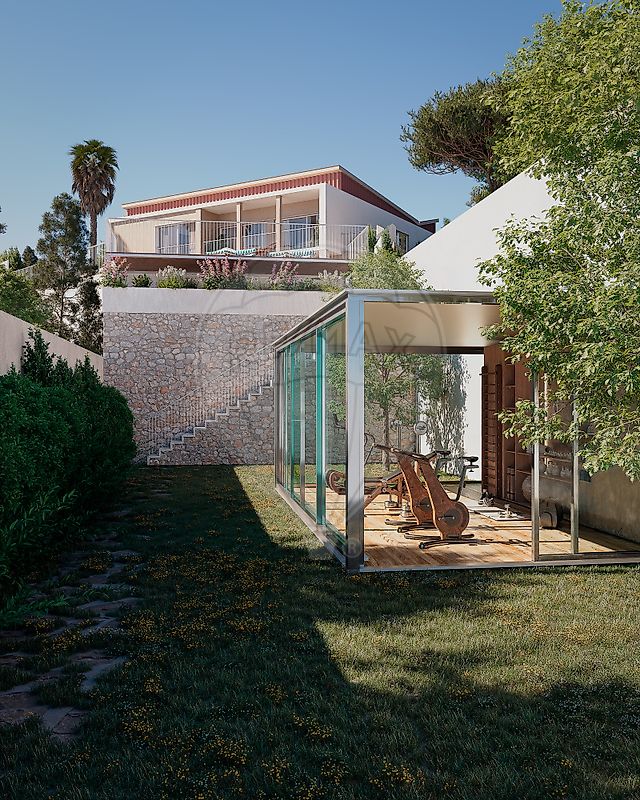 Terraço de acesso ao piso inferior e à piscina. - Cozinha elegante e com design , com móveis lacados a preto mate e vitrines em madeira carvalho iluminadas. Equipamentos Bosch topo de gama e arca de vinhos . Portas de vidro para a sala para maior conforto e privacidade -Master suite com walking closet -Escritório -WC Social Interior – piso inferior -1 master suite com generoso walking closet -2 suites -1 suite de serviço ou casa de arrumos -Lavandaria -Wc de apoio à piscina Salão de festas / ginásio -Pavilhão versátil com 45m2, equipado com cozinha e casa de banho completa Compromisso com a sustentabilidade: A habitação reflete um compromisso sólido com eficiência energética, conforto ambiental e responsabilidade ecológica: · Painéis solares e bomba de calor para águas quentes, combinados com bomba de retorno, reduzem desperdícios e aumentam a eficiência. · Caixilharias de alto desempenho com vidro duplo, isolamento térmico e acústico reforçado, e iluminação LED em toda a casa. · Torneiras e autoclismos de baixo consumo. · Gestão inteligente de energia e climatização, ventilação mecânica controlada (VMC) e orientação solar otimizada. O resultado é uma habitação moderna, elegante e consciente, onde luxo, conforto e sustentabilidade coexistem em perfeita harmonia. Viver em Cascais: Cascais é uma das vilas mais encantadoras e prestigiadas de Portugal, onde o charme do mar se encontra com a sofisticação e a tranquilidade de viver junto à natureza. Com o seu centro histórico repleto de vida, ruas pitorescas, restaurantes acolhedores e uma oferta cultural vibrante, Cascais combina autenticidade portuguesa com um estilo de vida cosmopolita. A poucos minutos de Lisboa, esta vila costeira oferece praias de águas calmas, o icónico paredão e uma atmosfera única que convida a desfrutar do ar livre durante todo o ano. Com uma vasta oferta excelentes escolas nacionais e internacionais, comércio local, marinas, campos de golfe e uma forte sensação de comunidade. Cascais é sinónimo de qualidade de vida — um lugar onde o tempo parece correr devagar e cada dia tem sabor a mar. As imagens apresentadas são maquetes que refletem de forma muito realista a obra final. Veja o vídeo para conhecer em mais detalhe a moradia e a sua envolvência. Obra de remodelação a decorrer – conclusão prevista no 1º trimestre de 2026 Mais detalhes sobre os acabamentos da moradia: Vãos exteriores Caixilharia em alumínio da série ST Sosoares, com acabamento lacado branco RAL 9010, composta por janelas oscilo-batentes e portas de correr em vidro duplo temperado SG 70/35 (6 mm + câmara 16 mm + laminado incolor 44.1 mm), garantindo elevado desempenho térmico, acústico e estético. Porta de entrada Elegante porta de segurança pivotante, com acabamento interior em MDF revestido a melamina branca, que combina robustez, design contemporâneo e elevada qualidade estética. Carpintarias Portas interiores com 2,00 m de altura, acabamento lacado em branco mate e puxadores em inox, que refletem um design contemporâneo e minimalista. Roupeiros com portas de batente, igualmente lacadas em branco mate, com interiores e gavetas revestidos em melamina texturada tipo linho, dotados de iluminação interior que realça a sofisticação e funcionalidade do espaço. Na master suite, localizada no piso superior, destaca-se um elegante walking closet com portas em vidro fumado castanho, proporcionando um ambiente distinto e requintado. Sala, Suites e Circulações Os espaços sociais e privados apresentam pavimento vinílico em madeira de carvalho, rematado com rodapés brancos mate, e paredes em estuque pintadas de branco, transmitindo luminosidade e sofisticação. O teto falso em gesso cartonado, com linhas de LED embutidas, cria ambientes modernos, elegantes e acolhedores. A sala dispõe de lareira com recuperador ADF Linea 100, equipada com ventilador, proporcionando calor eficiente e um ponto focal sofisticado. A habitação inclui duas master suites, cada uma com walking closet, garantindo privacidade, conforto e organização máxima. Iluminação e Instalações Elétricas O projeto de iluminação combina design, conforto e sofisticação, com linhas de LED embutidas, pontos direcionais e focos decorativos que valorizam cada espaço. O sistema integra zonas independentes, permitindo ajustar a luz conforme a ocasião. Todos os ambientes contam com interruptores e tomadas JUNG A 550 Branco Alpino, com design minimalista e elegante, que alia estética pura, funcionalidade e tecnologia, integrando-se com harmonia na arquitetura da habitação. Cozinha Pavimento vinílico de madeira de carvalho que confere elegância e durabilidade. Os móveis lacados a preto mate, com tampo em Silestone compacto da mesma tonalidade, e vitrines em madeira carvalho iluminadas, criam um ambiente sofisticado. Totalmente equipada com eletrodomésticos Bosch topo de gama: forno, micro-ondas, placa com exaustor incorporado, máquina de lavar loiça, frigorifico, arca vertical e mini garrafeira de vinhos na ilha, proporcionando funcionalidade sem comprometer o design. Lavandaria Concebida para unir funcionalidade e sofisticação, com móvel de duas colunas lacado em branco e bancada com cuba de apoio/tanque. A coluna técnica está equipada com máquina de lavar e secar roupa de gama alta, assegurando desempenho, eficiência e conforto no dia a dia. Casas de Banho As casas de banho foram concebidas como espaços de conforto, funcionalidade e requinte, com acabamentos premium e design contemporâneo. Pavimentos e revestimentos em cerâmica de alta qualidade conferem durabilidade e sofisticação, enquanto os sanitários suspensos e torneiras e duches de design minimalista garantem modernidade. Os móveis de lavatório, com gavetas e espaço de armazenamento inteligente, aliados a iluminação LED embutida, espelhos com luz integrada, toalheiros aquecidos e sistemas de ventilação silenciosos, prop